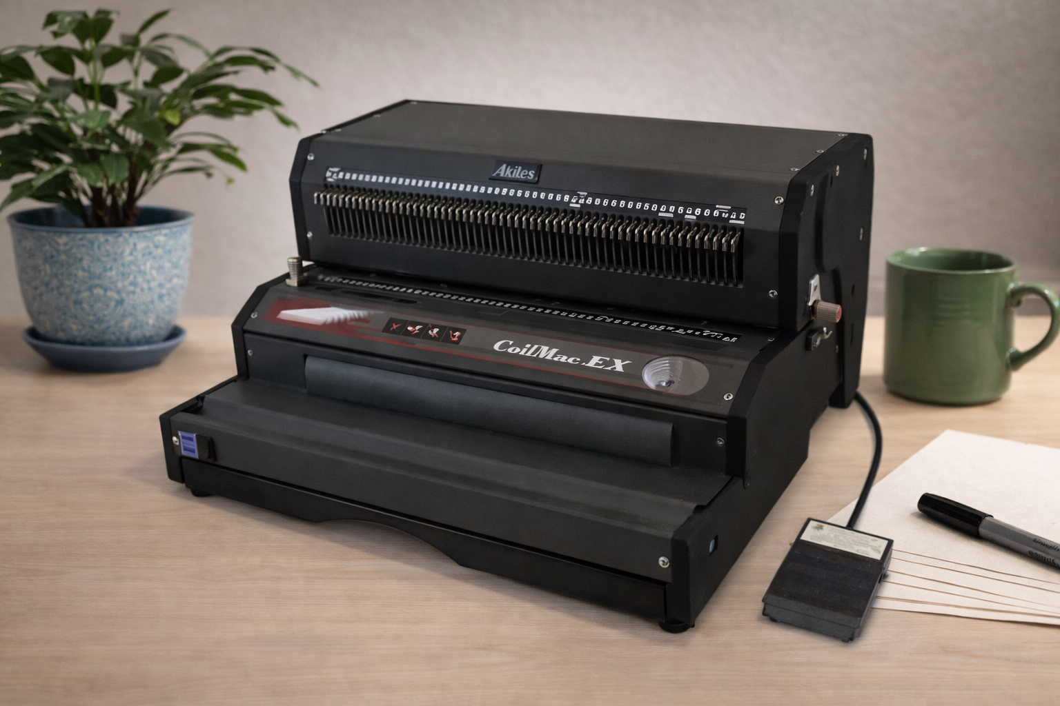 The CoilMac-EX Electric Punch and EX Plus makes coil binding fast, easy, convenient and professional; it’s the ideal partner for customers that have medium volume workloads. The CoilMac-EX is a more cost effective solution for those customers that don’t have the production requirements needed for an Akiles CoilMac-ECP system, but are looking for a more robust and durable machine than an Akiles CoilMac EPI.