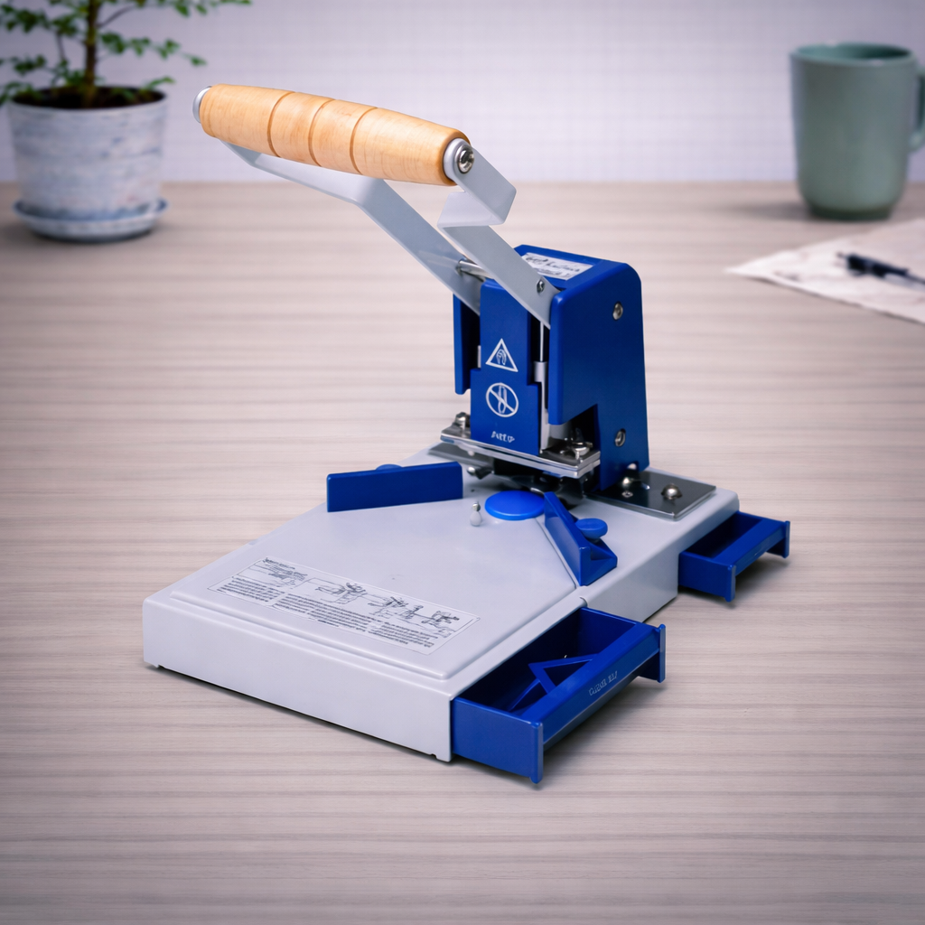 • Cuts plastic & paper up to 3/8″ thick stack of material at a time