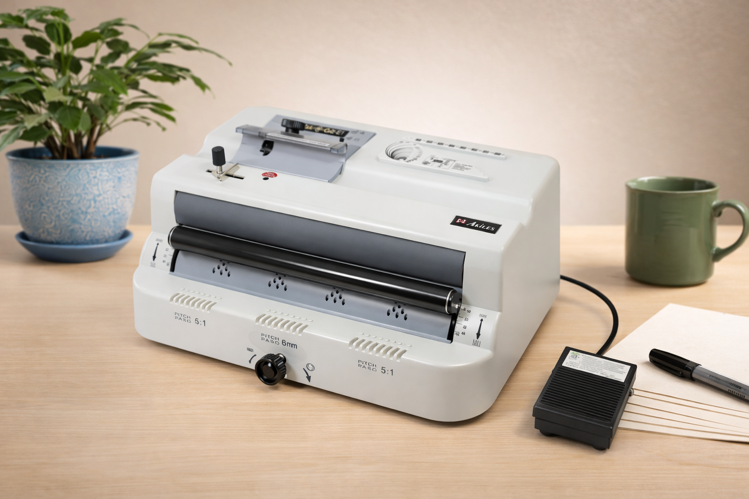 This heavy duty binder and crimper machine is ideal for maximizing heavy workloads. Electric Spiral Binding Coil Inserter Crimper with Synchronized Roller/Crimper Adjustment Makes it easy to set.