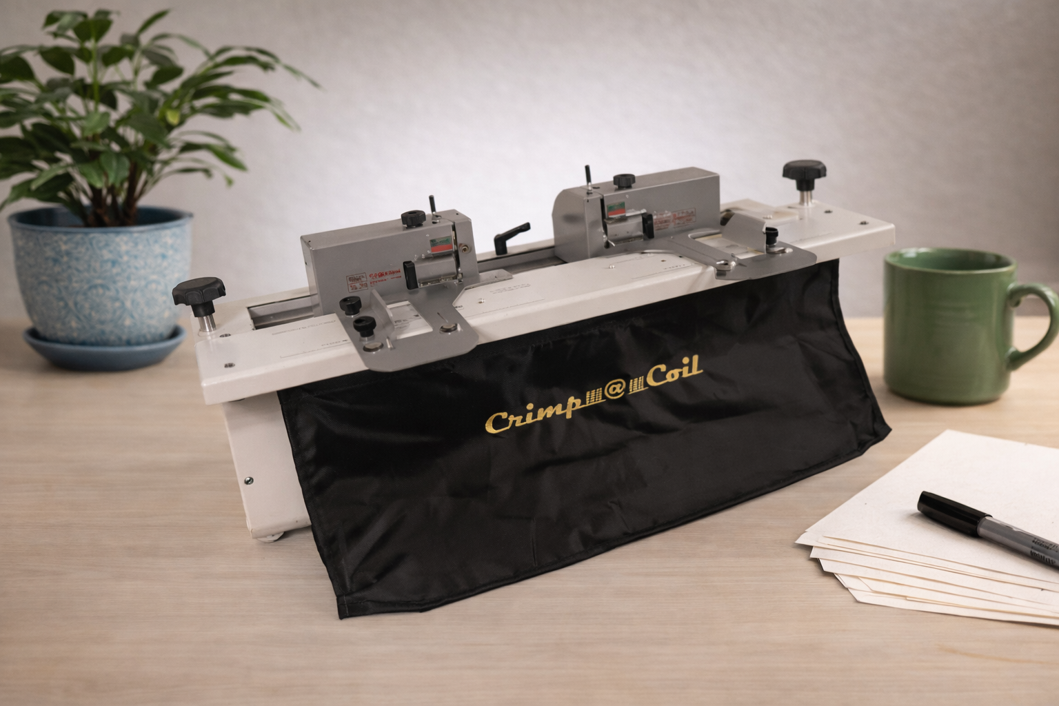 - The Akiles automatic Crimping two sided machine is an easy to use electric coil crimper that cuts & crimps both sides of your document at the same time.