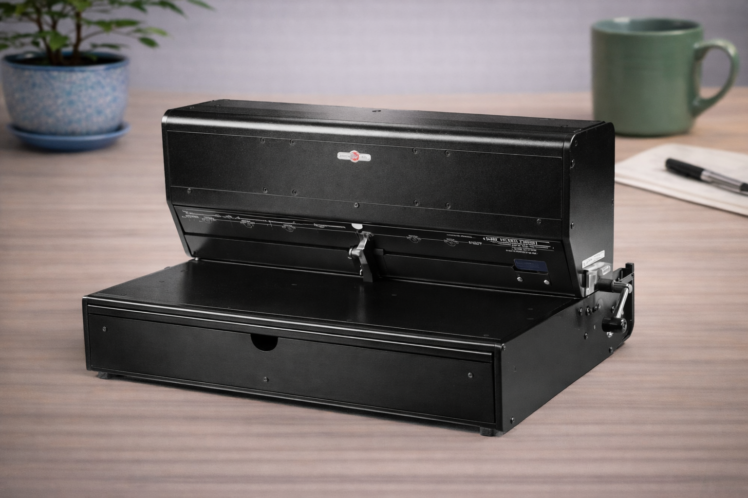 - It features the patented “quick change” die system for changing punch patterns in 30 seconds.