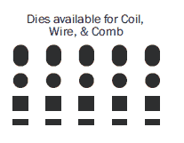 • Our interchangeable Rhin-O-Tuff 7500H Punch Die Tool work with twin loop wire, plastic comb, spiral coil, velo bind, and many other punch Die Patterns.
